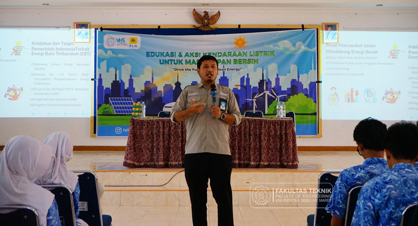 Sementara itu, Dekan FT UNS, Prof. Dr. Ir. Wahyudi Sutopo, S.T., M.Si., IPU., dalam sambutannya menyoroti pentingnya literasi publik terhadap kendaraan listrik di tengah tantangan adopsi teknologi di Indonesia.