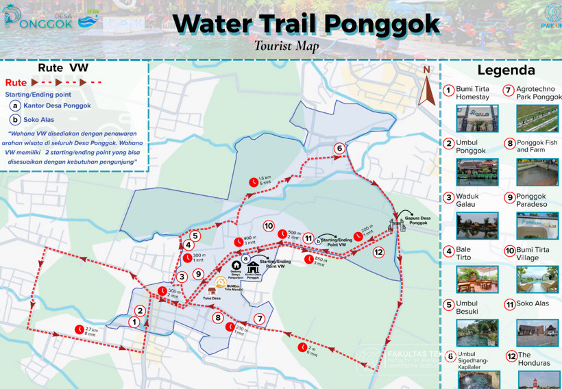 Berdasarkan hasil kajian tersebut, tim menyusun Peta Water Trail Ponggok, yang memetakan titik-titik atraksi wisata, jalur edukasi, serta potensi pengembangan kegiatan wisata berbasis konservasi. Peta ini diharapkan dapat menjadi acuan bagi desa dalam merancang pengembangan wilayah yang terarah dan memperkuat identitas destinasi wisata berbasis pelestarian lingkungan.