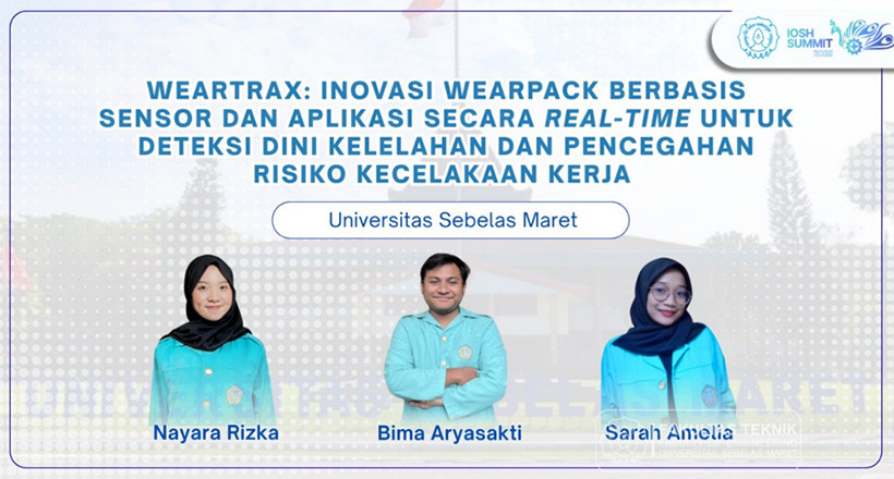FT UNS – Prestasi membanggakan kembali diraih mahasiswa Fakultas Teknik (FT) Universitas Sebelas Maret (UNS). Berawal dari kepedulian terhadap tingginya risiko kecelakaan kerja akibat kelelahan di lingkungan industri, tiga mahasiswa Teknik Industri FT UNS menciptakan inovasi cerdas bernama WEARTRAX.