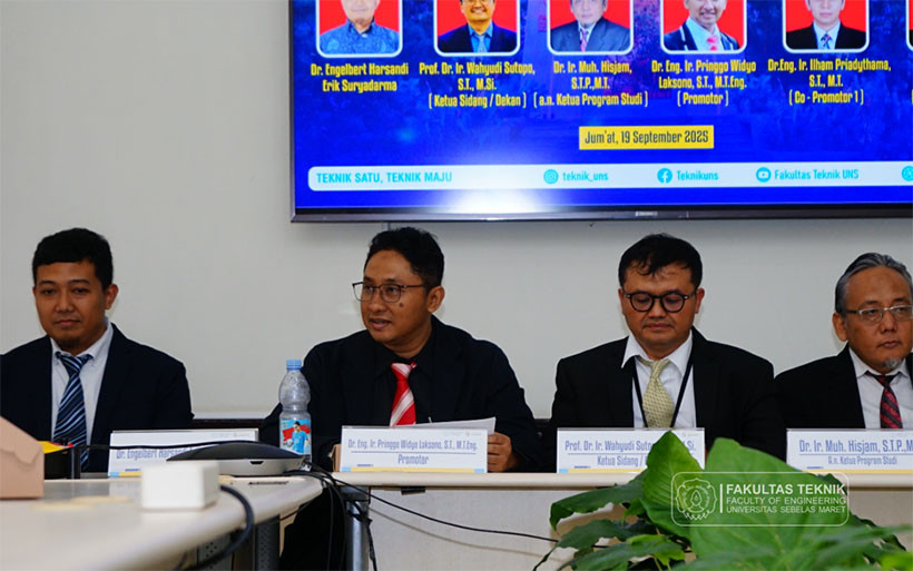 FT UNS – Fakultas Teknik (FT) Universitas Sebelas Maret (UNS) kembali meluncurkan terobosan inovatif melalui penelitian yang dikembangkan oleh Dr. Engelbert Harsandi Erik Suryadarma. Hasil riset ini disampaikan dalam acara Yudisium Promosi Doktor yang digelar pada Jumat (19/09/2025) di Ruang Sidang Senat Gedung Ir. RPM. Kasifudin, FT UNS.