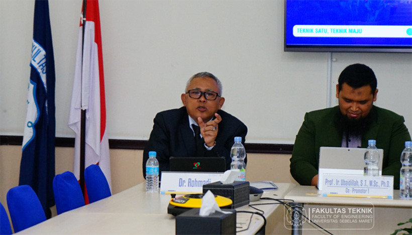 FT UNS – Fakultas Teknik (FT) Universitas Sebelas Maret (UNS) kembali menorehkan capaian akademik melalui keberhasilan Rohmadi meraih gelar Doktor pada Program Studi Doktor Ilmu Teknik Mesin (PSDTM). Yudisium Promosi Doktor dilaksanakan pada Senin (27/10/2025) di Ruang Sidang Senat, Gedung Ir. RPM. Kasifudin FT UNS, dipimpin oleh Prof. Dr. Ir. Eko Surojo, S.T., M.T. selaku Wakil Dekan Bidang Akademik dan Penelitian FT UNS, dan didampingi oleh Dr. Ir. Eko Prasetya Budiana, S.T., M.T. selaku Gugus Kendali Mutu Program Studi Doktor Ilmu Teknik Mesin.