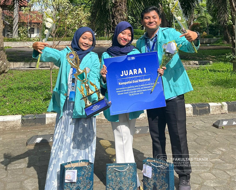 Karya tersebut sukses mengantarkan mereka meraih Juara 1 pada ajang bergengsi International Occupational Safety and Health (IOSH) Summit 2025, yang diselenggarakan oleh Himpunan Mahasiswa Sarjana Terapan Keselamatan dan Kesehatan Kerja Sekolah Vokasi UNS, Minggu (26/10/2025).